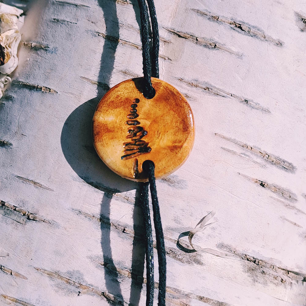 Material: Baumperlen (Naturholz), robustes Textilband