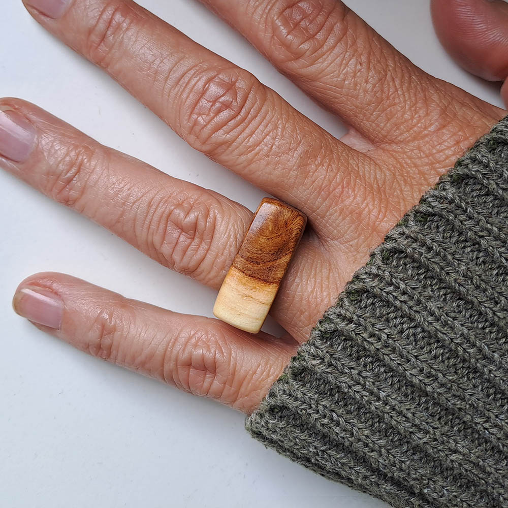 Diese einzigartigen Ringe aus echten Baumperlen verbinden natürliche Schönheit mit zeitloser Schlichtheit. Die warmen Holztöne und die sanft geschliffene Oberfläche machen jeden Ring zu einem kleinen Kunstwerk der Natur. Kein Stück gleicht dem anderen – jeder Ring erzählt seine eigene Geschichte in Form von Maserung, Farbe und Struktur.